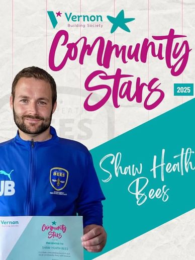 Shaw Heath Bees FC are proud to announce we have been awarded the Vernon Building Society Community Star Award, recognising the club’s outstanding commitment to making a positive impact across the Stockport community.